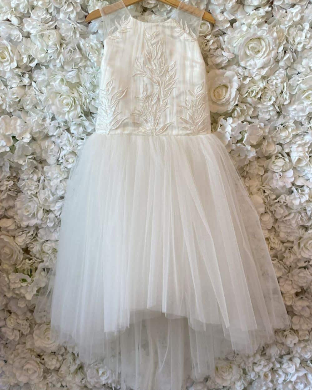 Haal het beste uit jouw bijzondere dag met ons ivoor tule kinderbruidsmeisje jurkje genaamd Gigi.