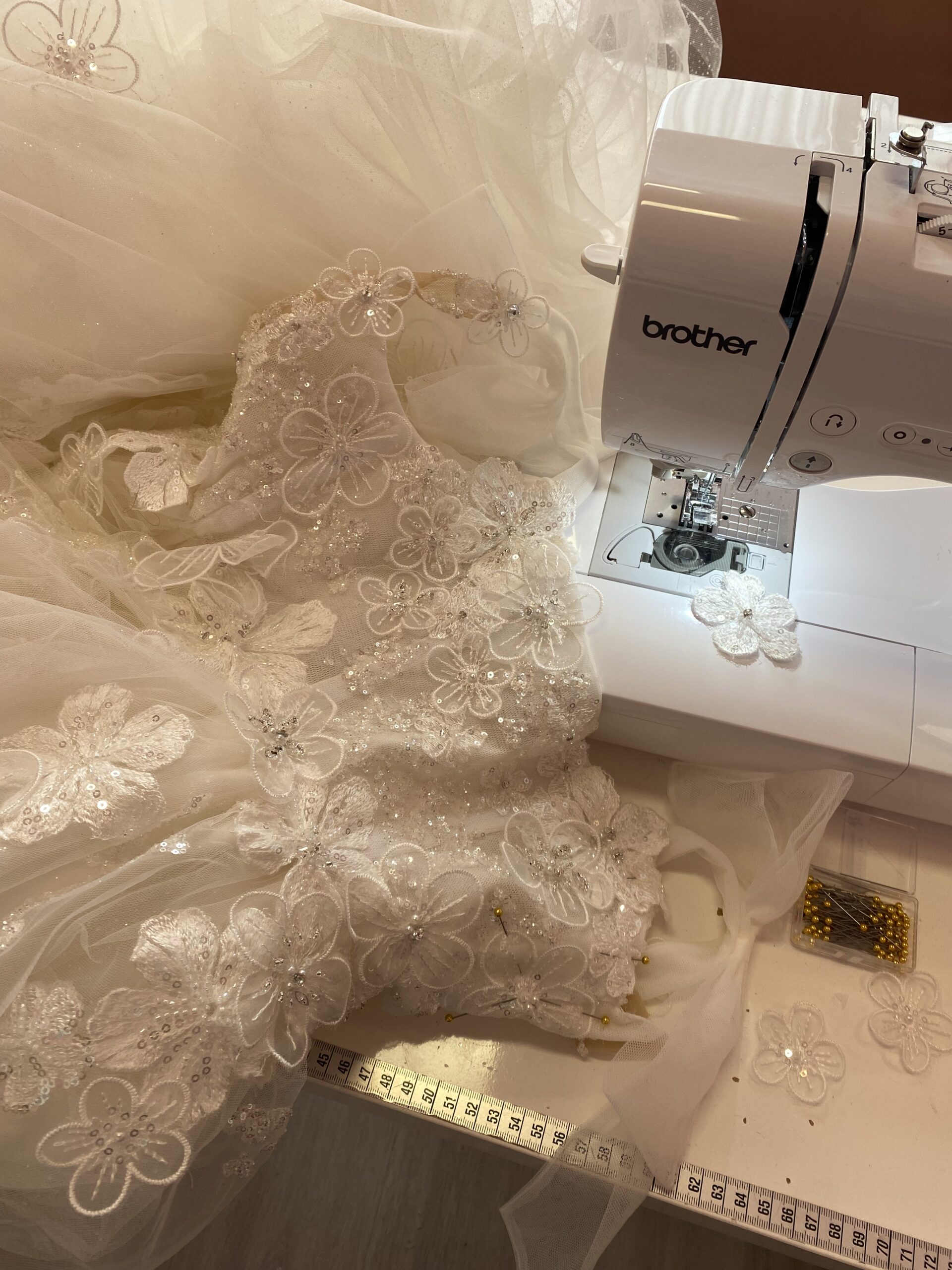 Van luchtig tule tot glanzend satijn en kant met 3D-bloemen. Ik kan uren bezig zijn met het combineren van materialen tot het perfecte jurkje ontstaat.